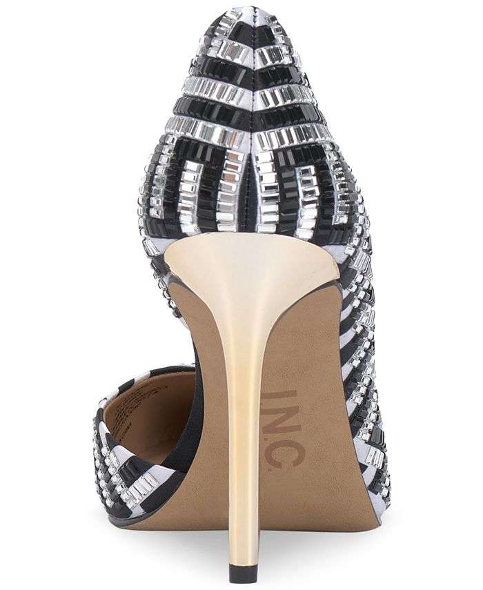 INC International Concepts’ Kenjay pumps add luxe intrigue to your evening look in a sultry d’Orsay silhouette studded with imitation pearls and rhinestones.