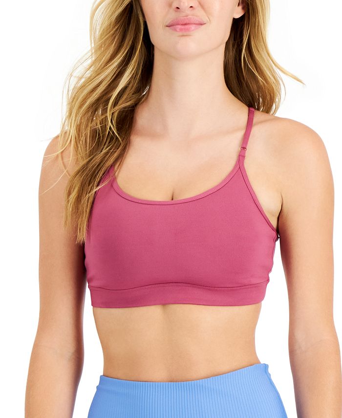 Equally sleek and stylish for yoga or relaxing, this low-impact sports bra from ID Ideology features delicate straps and a solid hue.