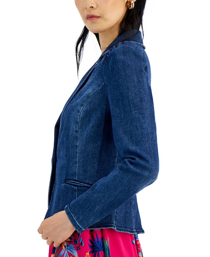 I.N.C. International Concepts® takes your career style in a new direction with this super soft denim blazer designed with great stretch and puff sleeves.